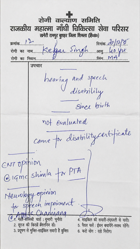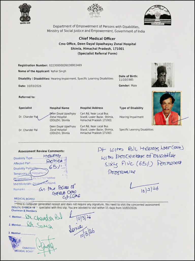 The case was of Keher Singh, a resident of Lalasa village, who is both speech and hearing impaired. For many years, he had been struggling without proper disability certification, due to which he was unable to access government schemes and benefits. Coming from a poor and uneducated family, his parents were unable to navigate the process or seek help.