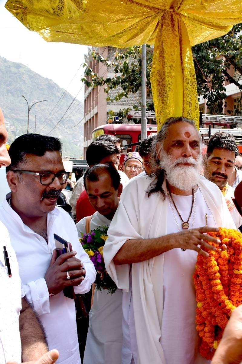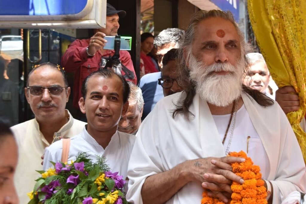 The satsang was blessed with the sacred presence of Pujya Mahamandaleshwar Swami Gyanananda Ji Maharaj, lovingly known as Gita Manishi Ji. His arrival filled the entire atmosphere with spiritual energy, peace, and divine bliss.